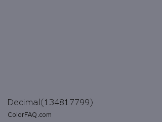 Decimal 134817799 Color is a normal blue color and the nearest color is Jumbo #7c7b82. Hex code #7b7c87 and RGB value is rgb(123,124,135). In RGB color space, this color is composed of 48% red, 49% green, 53% blue, In CMYK color space, this color is composed of 9% cyan, 8% magenta, 0% yellow , 47% black , In HSL color space, this color has a hue angle of 235° , 5% saturation and 51% lightness.