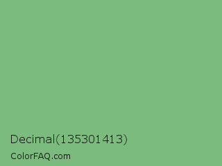 Decimal 135301413 Color is a light green color and the nearest color is Iguana Green #71bc78. Hex code #7bbb7d and RGB value is rgb(123,187,125). In RGB color space, this color is composed of 48% red, 73% green, 49% blue, In CMYK color space, this color is composed of 34% cyan, 0% magenta, 33% yellow , 27% black , In HSL color space, this color has a hue angle of 122° , 32% saturation and 61% lightness.
