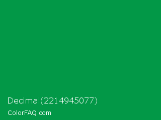 Decimal 2214945077 Color is a dark green color and the nearest color is Spanish Green #009150. Hex code #029847 and RGB value is rgb(2,152,71). In RGB color space, this color is composed of 1% red, 60% green, 28% blue, In CMYK color space, this color is composed of 99% cyan, 0% magenta, 53% yellow , 40% black , In HSL color space, this color has a hue angle of 148° , 97% saturation and 30% lightness.