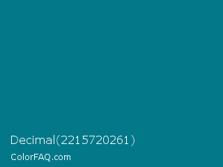 Decimal 2215720261 Color is a dark cyan color and the nearest color is Blue Lagoon #017987. Hex code #037889 and RGB value is rgb(3,120,137). In RGB color space, this color is composed of 1% red, 47% green, 54% blue, In CMYK color space, this color is composed of 98% cyan, 12% magenta, 0% yellow , 46% black , In HSL color space, this color has a hue angle of 188° , 96% saturation and 27% lightness.
