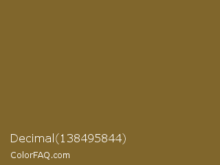 Decimal 138495844 Color is a normal orange color and the nearest color is Kumera #886221. Hex code #80662c and RGB value is rgb(128,102,44). In RGB color space, this color is composed of 50% red, 40% green, 17% blue, In CMYK color space, this color is composed of 0% cyan, 20% magenta, 66% yellow , 50% black , In HSL color space, this color has a hue angle of 41° , 49% saturation and 34% lightness.