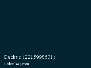 Decimal 2215998601 Color is a very dark blue color and the nearest color is Daintree #012731. Hex code #042431 and RGB value is rgb(4,36,49). In RGB color space, this color is composed of 2% red, 14% green, 19% blue, In CMYK color space, this color is composed of 92% cyan, 27% magenta, 0% yellow , 81% black , In HSL color space, this color has a hue angle of 197° , 85% saturation and 10% lightness.