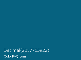 Decimal 2217755922 Color is a dark blue color and the nearest color is Orient #015e85. Hex code #066280 and RGB value is rgb(6,98,128). In RGB color space, this color is composed of 2% red, 38% green, 50% blue, In CMYK color space, this color is composed of 95% cyan, 23% magenta, 0% yellow , 50% black , In HSL color space, this color has a hue angle of 195° , 91% saturation and 26% lightness.