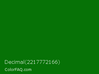 Decimal 2217772166 Color is a dark green color and the nearest color is Japanese Laurel #0a6906. Hex code #067206 and RGB value is rgb(6,114,6). In RGB color space, this color is composed of 2% red, 45% green, 2% blue, In CMYK color space, this color is composed of 95% cyan, 0% magenta, 95% yellow , 55% black , In HSL color space, this color has a hue angle of 120° , 90% saturation and 24% lightness.