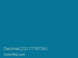 Decimal 2217776726 Color is a normal blue color and the nearest color is Allports #0076a3. Hex code #067698 and RGB value is rgb(6,118,152). In RGB color space, this color is composed of 2% red, 46% green, 60% blue, In CMYK color space, this color is composed of 96% cyan, 22% magenta, 0% yellow , 40% black , In HSL color space, this color has a hue angle of 194° , 92% saturation and 31% lightness.