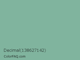 Decimal 138627142 Color is a normal green color and the nearest color is Acapulco #7cb0a1. Hex code #80b49e and RGB value is rgb(128,180,158). In RGB color space, this color is composed of 50% red, 71% green, 62% blue, In CMYK color space, this color is composed of 29% cyan, 0% magenta, 12% yellow , 29% black , In HSL color space, this color has a hue angle of 155° , 26% saturation and 60% lightness.