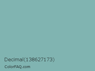 Decimal 138627173 Color is a normal cyan color and the nearest color is Gulf Stream #80b3ae. Hex code #80b4b1 and RGB value is rgb(128,180,177). In RGB color space, this color is composed of 50% red, 71% green, 69% blue, In CMYK color space, this color is composed of 29% cyan, 0% magenta, 2% yellow , 29% black , In HSL color space, this color has a hue angle of 177° , 26% saturation and 60% lightness.