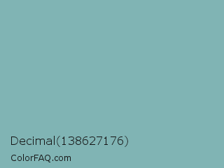 Decimal 138627176 Color is a normal cyan color and the nearest color is Gulf Stream #80b3ae. Hex code #80b4b4 and RGB value is rgb(128,180,180). In RGB color space, this color is composed of 50% red, 71% green, 71% blue, In CMYK color space, this color is composed of 29% cyan, 0% magenta, 0% yellow , 29% black , In HSL color space, this color has a hue angle of 180° , 26% saturation and 60% lightness.
