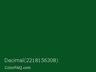 Decimal 2218156308 Color is a very dark green color and the nearest color is Camarone #00581a. Hex code #075322 and RGB value is rgb(7,83,34). In RGB color space, this color is composed of 3% red, 33% green, 13% blue, In CMYK color space, this color is composed of 92% cyan, 0% magenta, 59% yellow , 67% black , In HSL color space, this color has a hue angle of 141° , 84% saturation and 18% lightness.