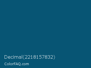 Decimal 2218157832 Color is a dark blue color and the nearest color is Chathams Blue #175579. Hex code #075574 and RGB value is rgb(7,85,116). In RGB color space, this color is composed of 3% red, 33% green, 45% blue, In CMYK color space, this color is composed of 94% cyan, 27% magenta, 0% yellow , 55% black , In HSL color space, this color has a hue angle of 197° , 89% saturation and 24% lightness.