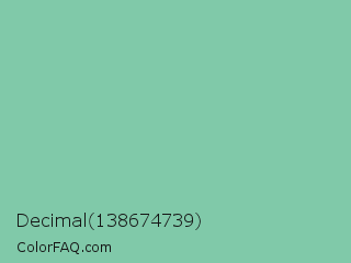 Decimal 138674739 Color is a light green color and the nearest color is Gulf Stream #80b3ae. Hex code #80c9a9 and RGB value is rgb(128,201,169). In RGB color space, this color is composed of 50% red, 79% green, 66% blue, In CMYK color space, this color is composed of 36% cyan, 0% magenta, 16% yellow , 21% black , In HSL color space, this color has a hue angle of 154° , 40% saturation and 65% lightness.