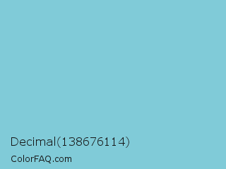 Decimal 138676114 Color is a light cyan color and the nearest color is Half Baked #85c4cc. Hex code #80cbd8 and RGB value is rgb(128,203,216). In RGB color space, this color is composed of 50% red, 80% green, 85% blue, In CMYK color space, this color is composed of 41% cyan, 6% magenta, 0% yellow , 15% black , In HSL color space, this color has a hue angle of 189° , 53% saturation and 67% lightness.