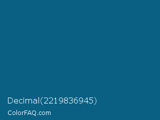 Decimal 2219836945 Color is a dark blue color and the nearest color is Orient #015e85. Hex code #096083 and RGB value is rgb(9,96,131). In RGB color space, this color is composed of 4% red, 38% green, 51% blue, In CMYK color space, this color is composed of 93% cyan, 27% magenta, 0% yellow , 49% black , In HSL color space, this color has a hue angle of 197° , 87% saturation and 27% lightness.