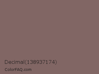 Decimal 138937174 Color is a normal red color and the nearest color is Sand Dune #826f65. Hex code #816664 and RGB value is rgb(129,102,100). In RGB color space, this color is composed of 51% red, 40% green, 39% blue, In CMYK color space, this color is composed of 0% cyan, 21% magenta, 22% yellow , 49% black , In HSL color space, this color has a hue angle of 4° , 13% saturation and 45% lightness.