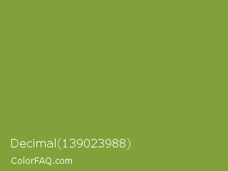 Decimal 139023988 Color is a normal lime color and the nearest color is Sushi #87ab39. Hex code #81a23a and RGB value is rgb(129,162,58). In RGB color space, this color is composed of 51% red, 64% green, 23% blue, In CMYK color space, this color is composed of 20% cyan, 0% magenta, 64% yellow , 36% black , In HSL color space, this color has a hue angle of 79° , 47% saturation and 43% lightness.