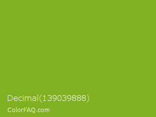 Decimal 139039888 Color is a normal green color and the nearest color is Lima #76bd17. Hex code #81b122 and RGB value is rgb(129,177,34). In RGB color space, this color is composed of 51% red, 69% green, 13% blue, In CMYK color space, this color is composed of 27% cyan, 0% magenta, 81% yellow , 31% black , In HSL color space, this color has a hue angle of 80° , 68% saturation and 41% lightness.