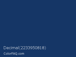 Decimal 2233950818 Color is a dark blue color and the nearest color is Biscay #1b3162. Hex code #153666 and RGB value is rgb(21,54,102). In RGB color space, this color is composed of 8% red, 21% green, 40% blue, In CMYK color space, this color is composed of 79% cyan, 47% magenta, 0% yellow , 60% black , In HSL color space, this color has a hue angle of 216° , 66% saturation and 24% lightness.