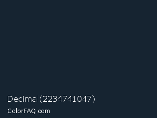 Decimal 2234741047 Color is a very dark blue color and the nearest color is Firefly #0e2a30. Hex code #162431 and RGB value is rgb(22,36,49). In RGB color space, this color is composed of 9% red, 14% green, 19% blue, In CMYK color space, this color is composed of 55% cyan, 27% magenta, 0% yellow , 81% black , In HSL color space, this color has a hue angle of 209° , 38% saturation and 14% lightness.