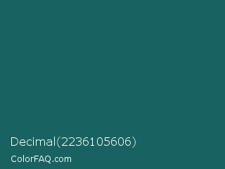 Decimal 2236105606 Color is a dark cyan color and the nearest color is Genoa #15736b. Hex code #186362 and RGB value is rgb(24,99,98). In RGB color space, this color is composed of 9% red, 39% green, 38% blue, In CMYK color space, this color is composed of 76% cyan, 0% magenta, 1% yellow , 61% black , In HSL color space, this color has a hue angle of 179° , 61% saturation and 24% lightness.