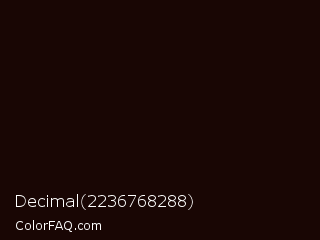 Decimal 2236768288 Color is a almost black red color and the nearest color is Nero #140600. Hex code #190604 and RGB value is rgb(25,6,4). In RGB color space, this color is composed of 10% red, 2% green, 2% blue, In CMYK color space, this color is composed of 0% cyan, 76% magenta, 84% yellow , 90% black , In HSL color space, this color has a hue angle of 6° , 72% saturation and 6% lightness.