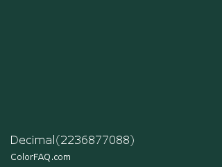 Decimal 2236877088 Color is a very dark cyan color and the nearest color is MSU Green #18453b. Hex code #194038 and RGB value is rgb(25,64,56). In RGB color space, this color is composed of 10% red, 25% green, 22% blue, In CMYK color space, this color is composed of 61% cyan, 0% magenta, 13% yellow , 75% black , In HSL color space, this color has a hue angle of 168° , 44% saturation and 17% lightness.