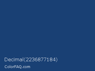 Decimal 2236877184 Color is a dark blue color and the nearest color is Astronaut #283a77. Hex code #194074 and RGB value is rgb(25,64,116). In RGB color space, this color is composed of 10% red, 25% green, 45% blue, In CMYK color space, this color is composed of 78% cyan, 45% magenta, 0% yellow , 55% black , In HSL color space, this color has a hue angle of 214° , 65% saturation and 28% lightness.