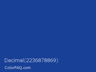 Decimal 2236878869 Color is a normal blue color and the nearest color is Yale Blue #0f4d92. Hex code #194097 and RGB value is rgb(25,64,151). In RGB color space, this color is composed of 10% red, 25% green, 59% blue, In CMYK color space, this color is composed of 83% cyan, 58% magenta, 0% yellow , 41% black , In HSL color space, this color has a hue angle of 221° , 72% saturation and 35% lightness.