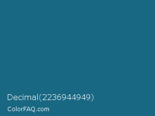 Decimal 2236944949 Color is a normal blue color and the nearest color is Blue Sapphire #126180. Hex code #196883 and RGB value is rgb(25,104,131). In RGB color space, this color is composed of 10% red, 41% green, 51% blue, In CMYK color space, this color is composed of 81% cyan, 21% magenta, 0% yellow , 49% black , In HSL color space, this color has a hue angle of 195° , 68% saturation and 31% lightness.