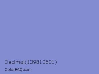 Decimal 139810601 Color is a light blue color and the nearest color is Chetwode Blue #8581d9. Hex code #828cd1 and RGB value is rgb(130,140,209). In RGB color space, this color is composed of 51% red, 55% green, 82% blue, In CMYK color space, this color is composed of 38% cyan, 33% magenta, 0% yellow , 18% black , In HSL color space, this color has a hue angle of 232° , 46% saturation and 66% lightness.