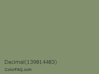 Decimal 139814483 Color is a normal green color and the nearest color is Battleship Gray #828f72. Hex code #82906d and RGB value is rgb(130,144,109). In RGB color space, this color is composed of 51% red, 56% green, 43% blue, In CMYK color space, this color is composed of 10% cyan, 0% magenta, 24% yellow , 44% black , In HSL color space, this color has a hue angle of 84° , 14% saturation and 50% lightness.