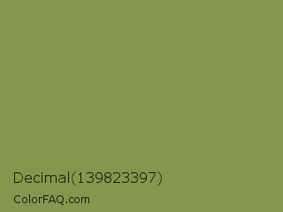 Decimal 139823397 Color is a normal lime color and the nearest color is Moss Green #8a9a5b. Hex code #82994d and RGB value is rgb(130,153,77). In RGB color space, this color is composed of 51% red, 60% green, 30% blue, In CMYK color space, this color is composed of 15% cyan, 0% magenta, 50% yellow , 40% black , In HSL color space, this color has a hue angle of 78° , 33% saturation and 45% lightness.