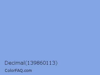 Decimal 139860113 Color is a light blue color and the nearest color is Light Cobalt Blue #88ace0. Hex code #82a4e3 and RGB value is rgb(130,164,227). In RGB color space, this color is composed of 51% red, 64% green, 89% blue, In CMYK color space, this color is composed of 43% cyan, 28% magenta, 0% yellow , 11% black , In HSL color space, this color has a hue angle of 219° , 63% saturation and 70% lightness.
