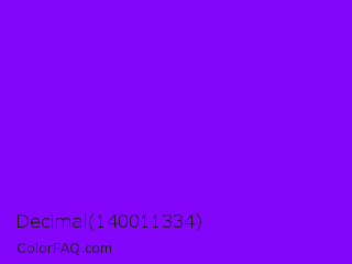 Decimal 140011334 Color is a normal purple color and the nearest color is Violet Color Wheel #7f00ff. Hex code #8305fa and RGB value is rgb(131,5,250). In RGB color space, this color is composed of 51% red, 2% green, 98% blue, In CMYK color space, this color is composed of 48% cyan, 98% magenta, 0% yellow , 2% black , In HSL color space, this color has a hue angle of 271° , 96% saturation and 50% lightness.