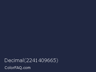Decimal 2241409665 Color is a very dark blue color and the nearest color is Yankees Blue #1c2841. Hex code #202741 and RGB value is rgb(32,39,65). In RGB color space, this color is composed of 13% red, 15% green, 25% blue, In CMYK color space, this color is composed of 51% cyan, 40% magenta, 0% yellow , 75% black , In HSL color space, this color has a hue angle of 227° , 34% saturation and 19% lightness.