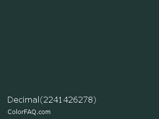 Decimal 2241426278 Color is a very dark cyan color and the nearest color is Medium Jungle Green #1c352d. Hex code #203736 and RGB value is rgb(32,55,54). In RGB color space, this color is composed of 13% red, 22% green, 21% blue, In CMYK color space, this color is composed of 42% cyan, 0% magenta, 2% yellow , 78% black , In HSL color space, this color has a hue angle of 177° , 26% saturation and 17% lightness.