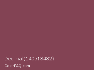 Decimal 140518482 Color is a normal rose color and the nearest color is Deep Ruby #843f5b. Hex code #834354 and RGB value is rgb(131,67,84). In RGB color space, this color is composed of 51% red, 26% green, 33% blue, In CMYK color space, this color is composed of 0% cyan, 49% magenta, 36% yellow , 49% black , In HSL color space, this color has a hue angle of 344° , 32% saturation and 39% lightness.