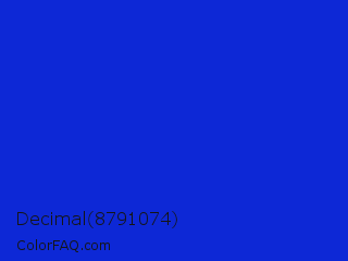 Decimal 8791074 Color is a normal blue color and the nearest color is Bluebonnet #1c1cf0. Hex code #0d28d6 and RGB value is rgb(13,40,214). In RGB color space, this color is composed of 5% red, 16% green, 84% blue, In CMYK color space, this color is composed of 94% cyan, 81% magenta, 0% yellow , 16% black , In HSL color space, this color has a hue angle of 232° , 89% saturation and 45% lightness.