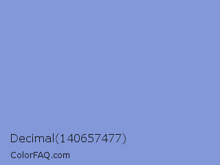 Decimal 140657477 Color is a light blue color and the nearest color is Vista Blue #7c9ed9. Hex code #8398d9 and RGB value is rgb(131,152,217). In RGB color space, this color is composed of 51% red, 60% green, 85% blue, In CMYK color space, this color is composed of 40% cyan, 30% magenta, 0% yellow , 15% black , In HSL color space, this color has a hue angle of 225° , 53% saturation and 68% lightness.