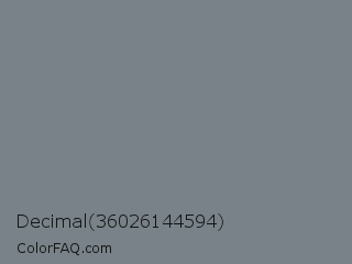 Decimal 36026144594 Color is a normal blue color and the nearest color is Rolling Stone #747d83. Hex code #788288 and RGB value is rgb(120,130,136). In RGB color space, this color is composed of 47% red, 51% green, 53% blue, In CMYK color space, this color is composed of 12% cyan, 4% magenta, 0% yellow , 47% black , In HSL color space, this color has a hue angle of 203° , 6% saturation and 50% lightness.