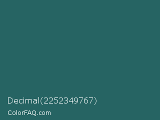 Decimal 2252349767 Color is a dark cyan color and the nearest color is Casal #2f6168. Hex code #266463 and RGB value is rgb(38,100,99). In RGB color space, this color is composed of 15% red, 39% green, 39% blue, In CMYK color space, this color is composed of 62% cyan, 0% magenta, 1% yellow , 61% black , In HSL color space, this color has a hue angle of 179° , 45% saturation and 27% lightness.