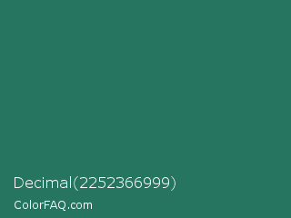 Decimal 2252366999 Color is a dark cyan color and the nearest color is Genoa #15736b. Hex code #267561 and RGB value is rgb(38,117,97). In RGB color space, this color is composed of 15% red, 46% green, 38% blue, In CMYK color space, this color is composed of 68% cyan, 0% magenta, 17% yellow , 54% black , In HSL color space, this color has a hue angle of 165° , 51% saturation and 30% lightness.