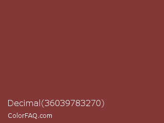 Decimal 36039783270 Color is a normal red color and the nearest color is Lotus #863c3c. Hex code #833736 and RGB value is rgb(131,55,54). In RGB color space, this color is composed of 51% red, 22% green, 21% blue, In CMYK color space, this color is composed of 0% cyan, 58% magenta, 59% yellow , 49% black , In HSL color space, this color has a hue angle of 1° , 42% saturation and 36% lightness.