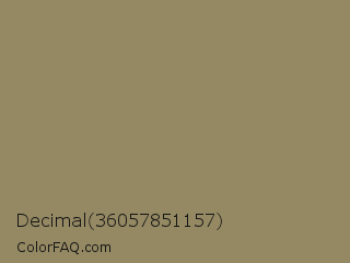 Decimal 36057851157 Color is a normal yellow color and the nearest color is Clay Creek #8a8360. Hex code #948963 and RGB value is rgb(148,137,99). In RGB color space, this color is composed of 58% red, 54% green, 39% blue, In CMYK color space, this color is composed of 0% cyan, 7% magenta, 33% yellow , 42% black , In HSL color space, this color has a hue angle of 47° , 20% saturation and 48% lightness.