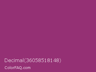 Decimal 36058518148 Color is a normal magenta color and the nearest color is Amaranth Deep Purple #9f2b68. Hex code #953074 and RGB value is rgb(149,48,116). In RGB color space, this color is composed of 58% red, 19% green, 45% blue, In CMYK color space, this color is composed of 0% cyan, 68% magenta, 22% yellow , 42% black , In HSL color space, this color has a hue angle of 320° , 51% saturation and 39% lightness.