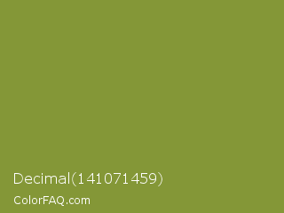 Decimal 141071459 Color is a normal lime color and the nearest color is Sycamore #908d39. Hex code #849737 and RGB value is rgb(132,151,55). In RGB color space, this color is composed of 52% red, 59% green, 22% blue, In CMYK color space, this color is composed of 13% cyan, 0% magenta, 64% yellow , 41% black , In HSL color space, this color has a hue angle of 72° , 47% saturation and 40% lightness.