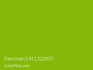 Decimal 141132065 Color is a normal lime color and the nearest color is Apple Green #8db600. Hex code #84b909 and RGB value is rgb(132,185,9). In RGB color space, this color is composed of 52% red, 73% green, 4% blue, In CMYK color space, this color is composed of 29% cyan, 0% magenta, 95% yellow , 27% black , In HSL color space, this color has a hue angle of 78° , 91% saturation and 38% lightness.