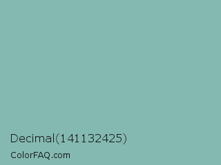 Decimal 141132425 Color is a light cyan color and the nearest color is Gulf Stream #80b3ae. Hex code #84b9b1 and RGB value is rgb(132,185,177). In RGB color space, this color is composed of 52% red, 73% green, 69% blue, In CMYK color space, this color is composed of 29% cyan, 0% magenta, 4% yellow , 27% black , In HSL color space, this color has a hue angle of 171° , 27% saturation and 62% lightness.