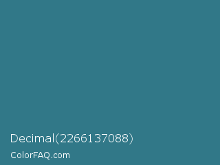 Decimal 2266137088 Color is a normal cyan color and the nearest color is Teal Blue #367588. Hex code #317888 and RGB value is rgb(49,120,136). In RGB color space, this color is composed of 19% red, 47% green, 53% blue, In CMYK color space, this color is composed of 64% cyan, 12% magenta, 0% yellow , 47% black , In HSL color space, this color has a hue angle of 191° , 47% saturation and 36% lightness.