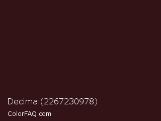 Decimal 2267230978 Color is a very dark red color and the nearest color is Tamarind #341515. Hex code #331316 and RGB value is rgb(51,19,22). In RGB color space, this color is composed of 20% red, 7% green, 9% blue, In CMYK color space, this color is composed of 0% cyan, 63% magenta, 57% yellow , 80% black , In HSL color space, this color has a hue angle of 354° , 46% saturation and 14% lightness.