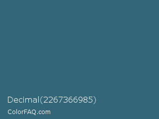 Decimal 2267366985 Color is a normal blue color and the nearest color is Ming #36747d. Hex code #336679 and RGB value is rgb(51,102,121). In RGB color space, this color is composed of 20% red, 40% green, 47% blue, In CMYK color space, this color is composed of 58% cyan, 16% magenta, 0% yellow , 53% black , In HSL color space, this color has a hue angle of 196° , 41% saturation and 34% lightness.
